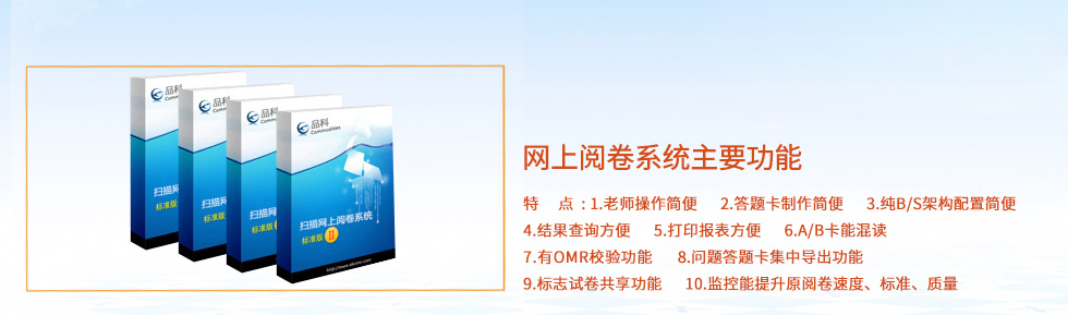 光標(biāo)閱讀機(jī)系列 | 網(wǎng)上閱卷系列 | 機(jī)讀卡系列 | 教學(xué)軟件 | 新聞中心 | 公司簡介 | 聯(lián)系我們